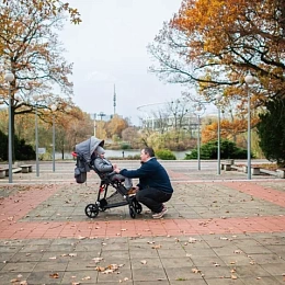 Модель выпускается в элегантном сером цвете с яркими акцентами и выбором белой или чёрной рамы. Дополнительные аксессуары помогают адаптировать коляску под разные ситуации — от ежедневных прогулок до использования в дождливую или холодную погоду.
